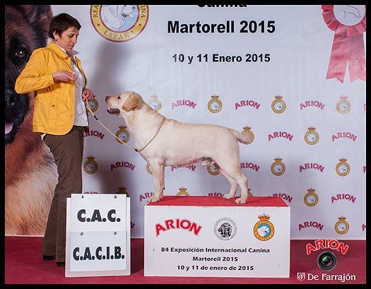 Nuestro Labrador Retriever macho amarillo en clase intermedia, de nombre Marshal, el mismo que el año pasado hizo el Best in Show Cachorros en la misma Exposición de Martorell 2014. Este año gana su primer CAC y CACIB en clase Intemediaria.